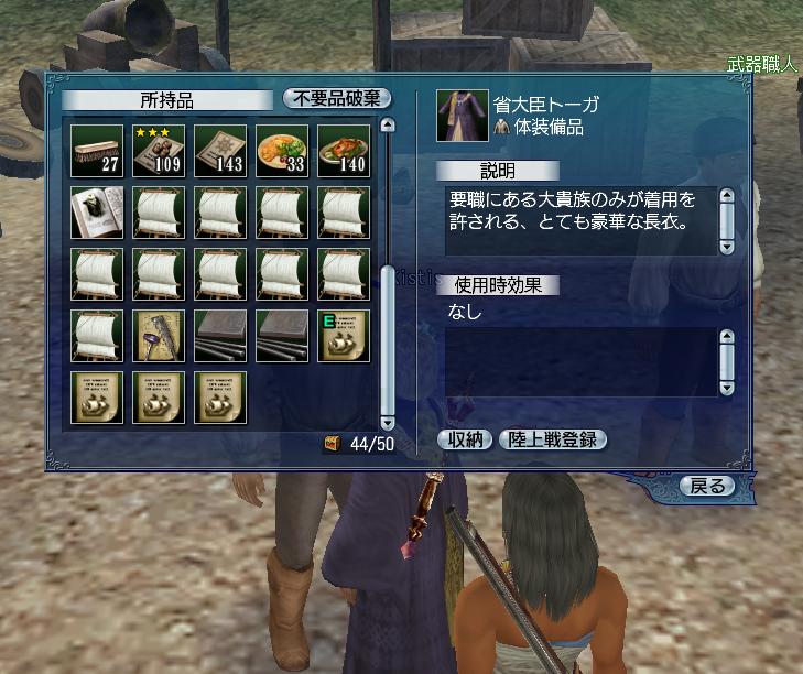 なぜかカリブで2回も3回も嵐に見舞われながら、ヴェラクルスを目指します。 (パッチで嵐減らすって言ってなかったですかコーエー!) 先ほどの拿捕された精神的ダメージからか、船影が見えるたびに Σ(゚Д゚;)びくっ とかしてますが、陸沿い行かないとNPCにぼこられるので泣く泣く同じルートをたどります。貧乏なのでNPC上納品節約なのです。 ついでにさっき受け忘れたポルトベロのカテ3クエ「貴族のたしなみ」とやらを受けました。これでサンゴ細工を5個持ってジェノヴァ行けばカテ3を14枚×2でうはうはなのです。 そして、やっとの思いでヴェラクルスにたどり着き、強化ロープを10本作りました。 それからサンフアンに戻ってサンゴ細工を5個×2買い込み、ペルナンブコへ。 そこでやっと・・・やっと! できましたぁぁぁぁ(`・ω・´) 大事に大事に持ってリスボンへ。カリブを無駄に往復して横断したため真夜中をとっくに過ぎていて、時々不自然に長いまばたきをしながら、船はうにうにと妙な曲線を描きながらリスボンに着いたのでした。 苦労して育てた子なので愛着もわきますが、貧乏なので泣く泣く倉庫番にお渡し。 「高く、できるだけ高く売れるんだよぉぉぉ。・゚・(ノД`)ノシ・゚・。」 と、涙の別れを済ませ、BCの準備をして(BCの存在をすっかり忘れて海事用具を倉庫番に預けていたので非常に面倒な作業に・・・orz)、転職証を集め(すっかり忘れていたので指摘されて慌てて集めた)、インドに旅立ちましたとさ。 おわたー(´▽`)